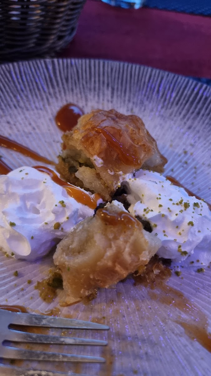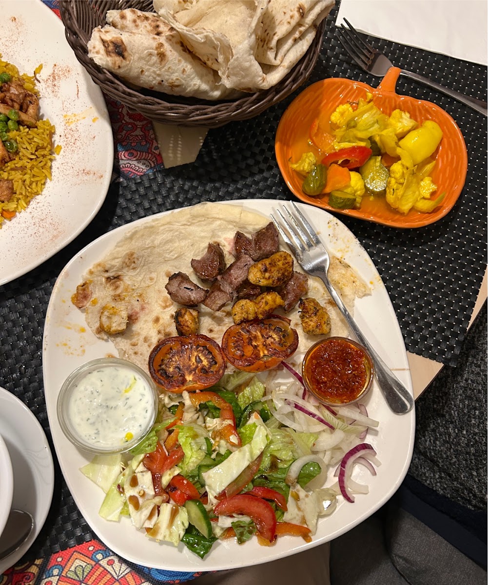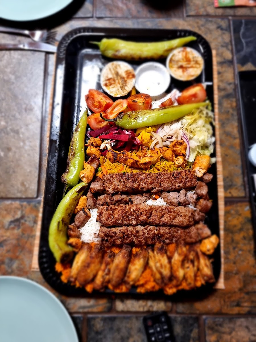 It is a family own restuarant and people are very humble and friendly. We spent really a nice evening with delicious middle eastern food. -Free Parking